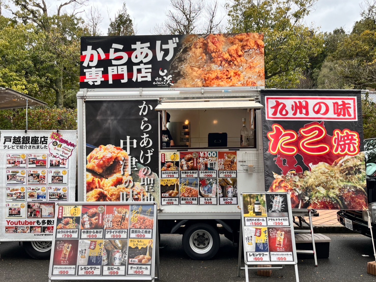 BEAT PHOENIX 2025 当日のフェニックスプラザ前 広場にて販売 FOOD TRUCK U.S.A EAT ME 中津からあげ渓 グルメキャラバンポップ free dot. K&K FOOD’S